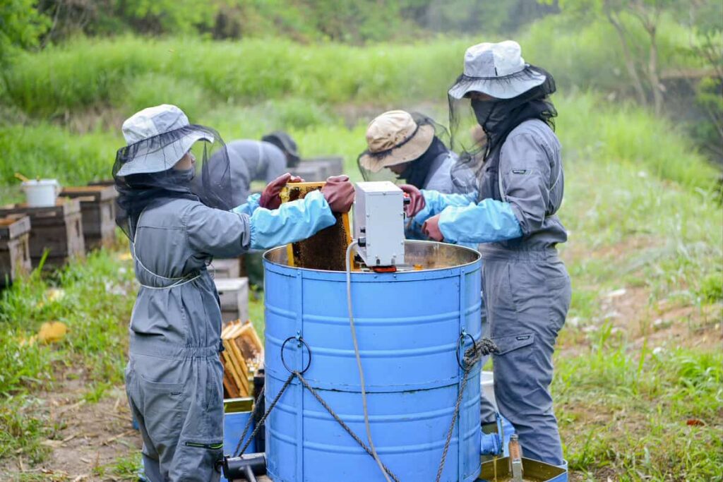 そんな信念のもと、女王蜂の生産から蜂箱の管理まで一貫して蜜蜂を大切に育てています。